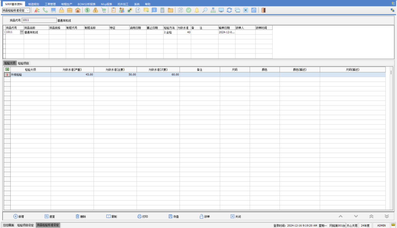 2、ERP設(shè)置【貨品檢驗(yàn)標(biāo)準(zhǔn)設(shè)定】