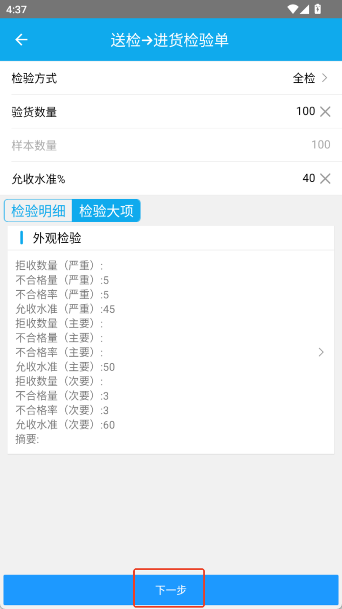 然后再繼續(xù)錄入下一個(gè)檢驗(yàn)明細(xì)的資料