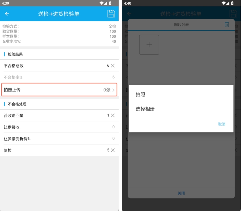 選擇或拍照完成后,點(diǎn)擊【關(guān)閉】即可